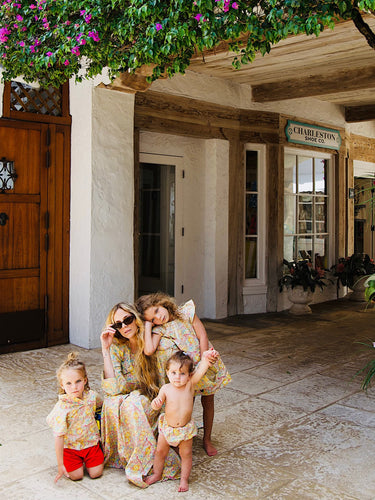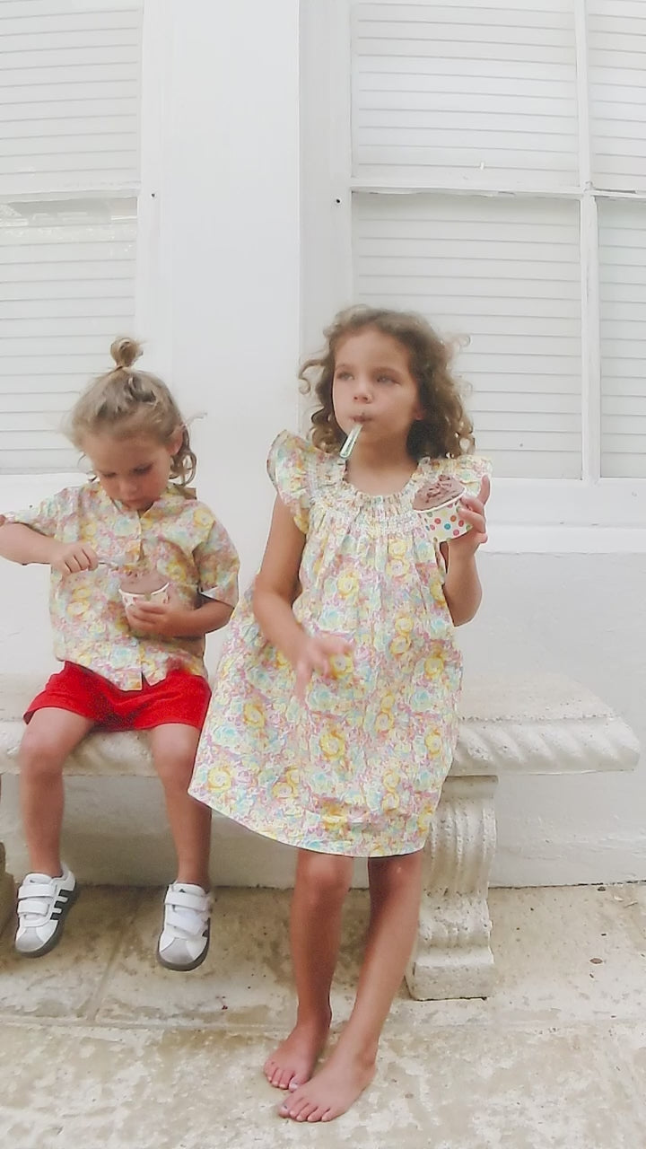A classic ditsy in crisp fabrics. A fresh & bright palette for springtime Afternoons. Inspired by early twentieth century ditsy florals. Simple day dresses of the 40s, cheerful cotton bedding of the 50s, forever sweet, timeless cheerful.