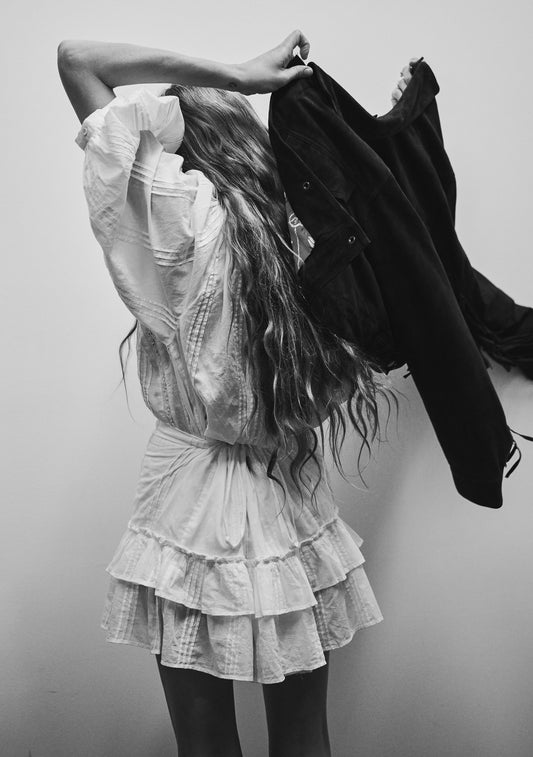 Cinch Back Mini Skirt | Pintuck Cotton with Lace