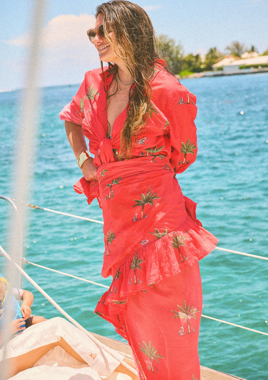 Cinch Back Maxi Skirt | Cotton Jacquard