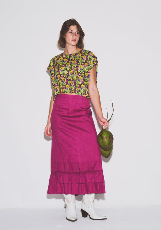 Cinch Back Midi Skirt | Silk Dupioni