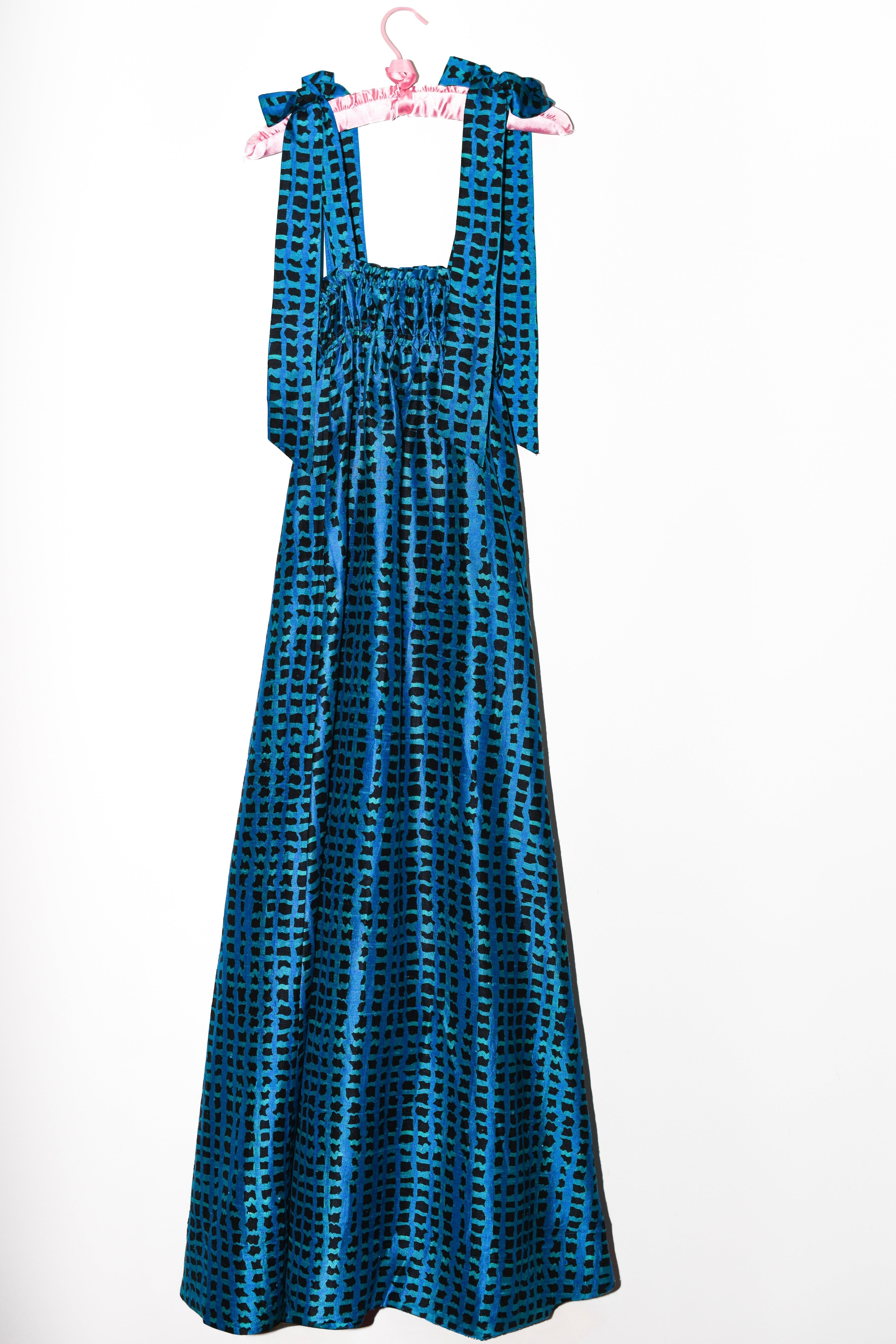 A smocked top with functional elastic tunnels extends into a flowing skirt that you’ll want to live in this summer. Simple and fuss free, just an easy style that offers elevated elegance in our signature silk dupioni fabric. Self-ties at the shoulder can be tucked in if you want to wear as a strapless dress!