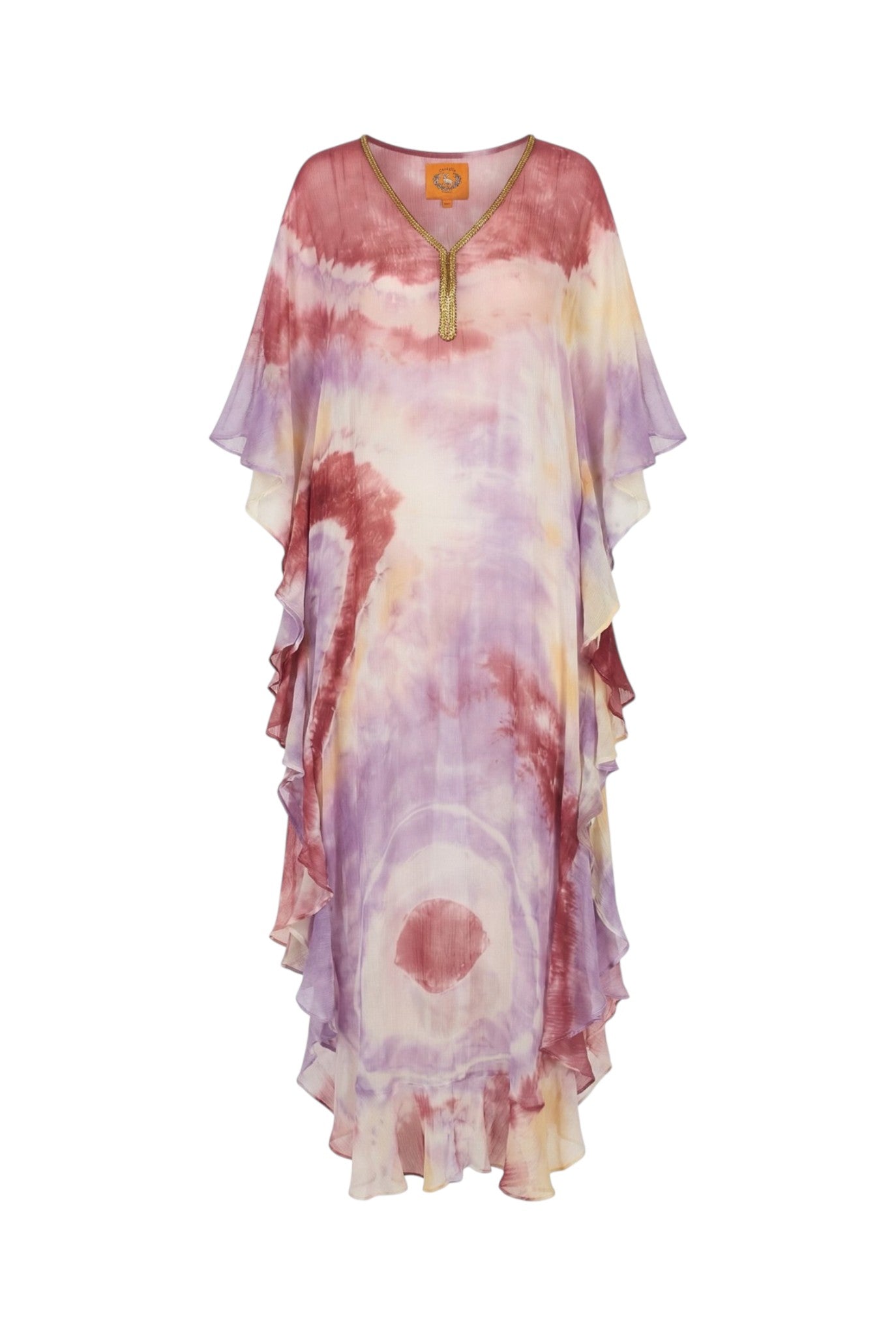 V Neck Ruffle Maxi Caftan | Viscose Chiffon