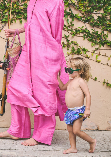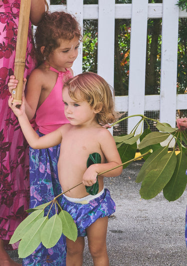 Elasticated waist and leg opening with full bottom. Can be worn alone as unisex diaper cover for an easy beach day or under our Willa Dress + Remy Skirt for that extra girl-on-the-go coverage!
