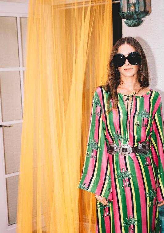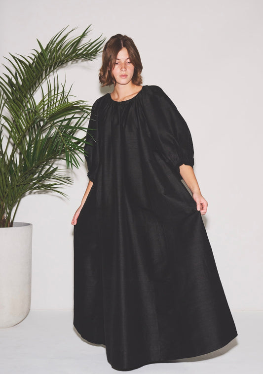 Shirred Half Placket Maxi Dress | Silk Dupioni