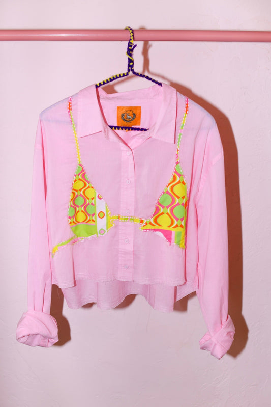 Cropped Business Casual Button Down | Embroidered Cotton Voile