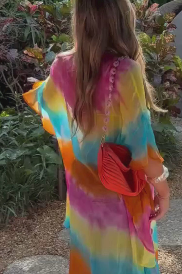 V Neck Ruffle Maxi Caftan | Viscose Chiffon