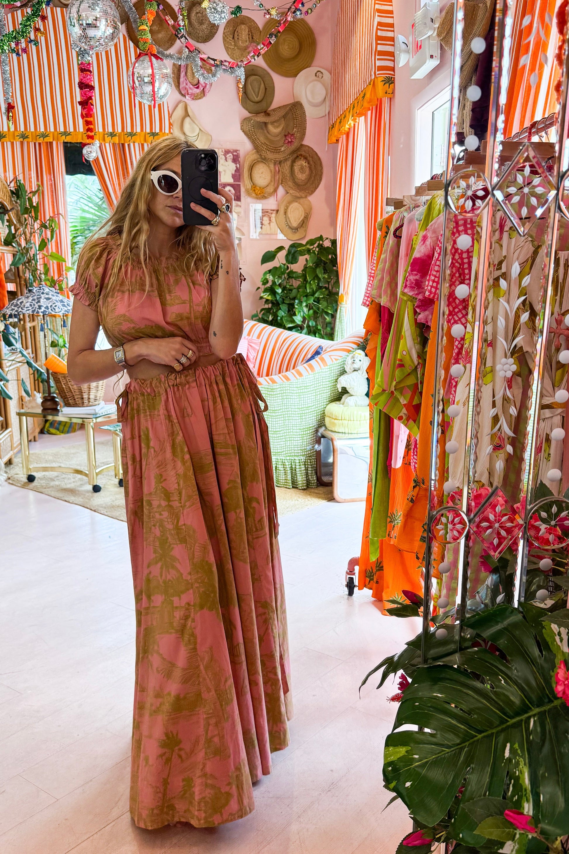 Breeze through Fall in this perfectly printed A-line maxi skirt! Featuring dual drawstring cords at the waist for our signature flex fit style, this skirt is elevated enough for a night out on the town & chill enough for lounging at the pool. Framed by every woman's favorite design addition of pockets, this will be THE piece you will want to wear every day.