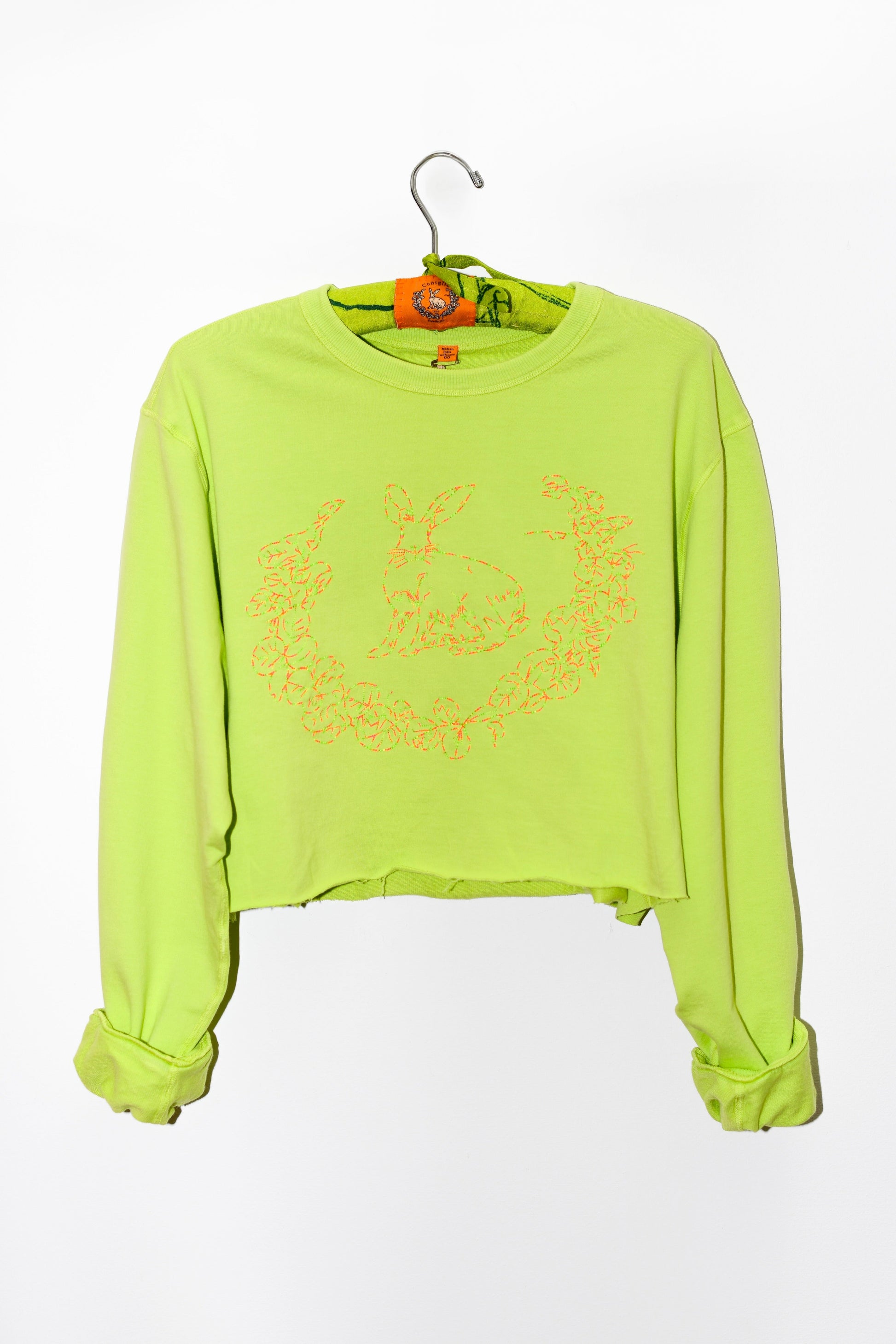 Cropped Embroidered Bunny Pullover | Cotton Terry