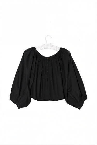 Cropped Shirred Half Placket Blouse | Cotton Poplin