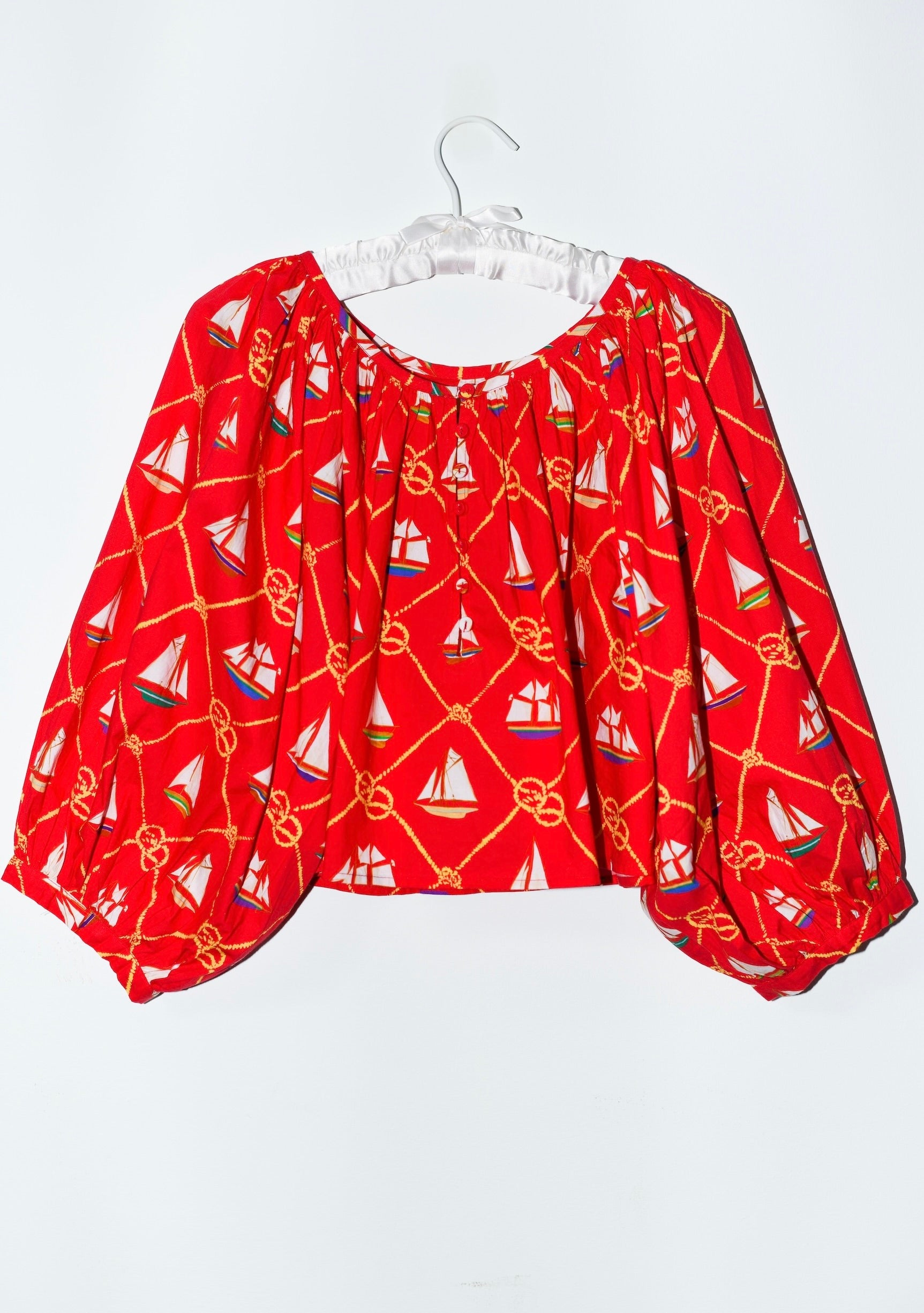 Cropped Shirred Half Placket Blouse | Cotton Poplin