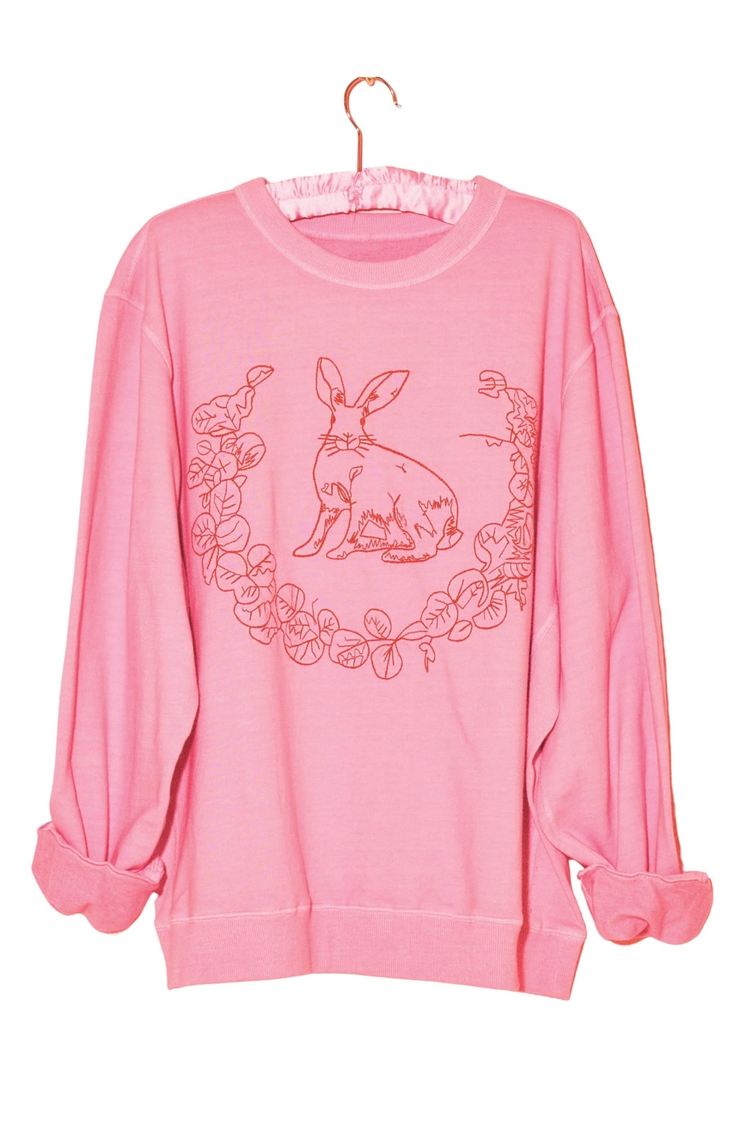 Easy relaxed fit that is shareable and unisex. Longer sleeve length allows for flex fit taller wearer. French terry loop back fabric with our classic bunny crest represented in fine thread embroidery. Something cozy, something cool, something you will LOVE!
