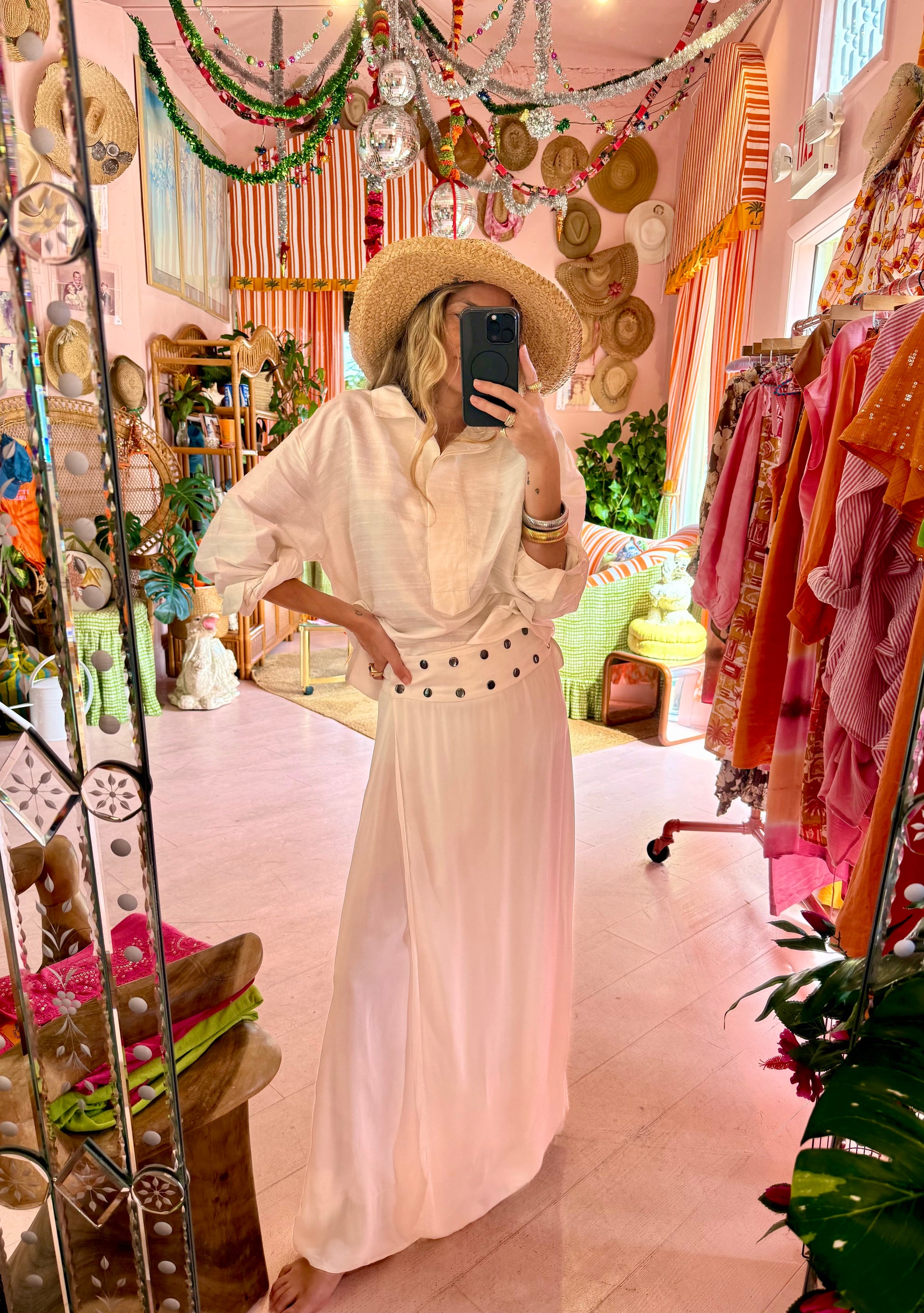 Double row of 7 snaps across the waistband allows this piece to be worn countless ways! Fully lined, she’s an easy, breezy add to your wardrobe that can go from work to the beach to dinner and still looks fab! The snap closures and wrap style provide a flexible fit to be worn as you like. High, mid, or low waist…the possibilities are only limited to you!