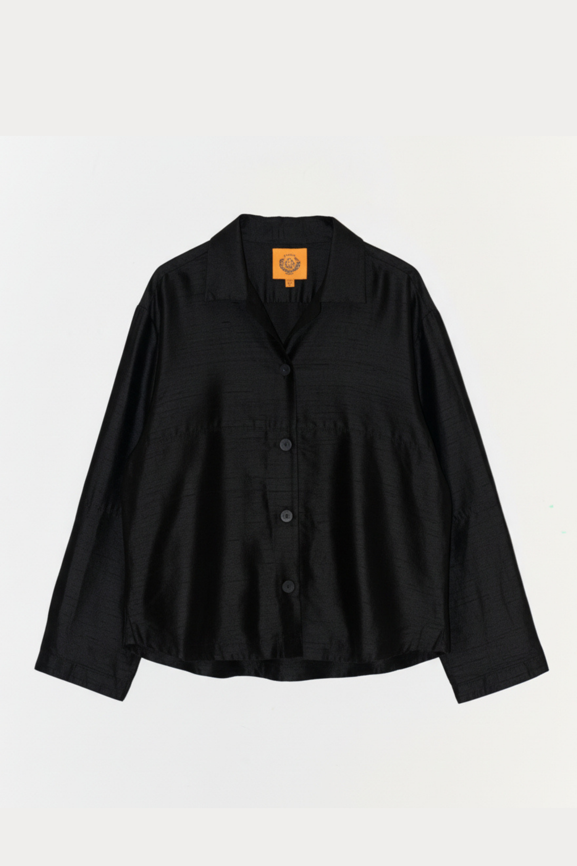 A new boxy silhouette that is an elevated piece for evening or day wear. All over rice stitch hand embroidery detail with self covered buttons at center front. A Free Size item that is a relaxed fit for small to medium flex and will be your favorite layering piece.