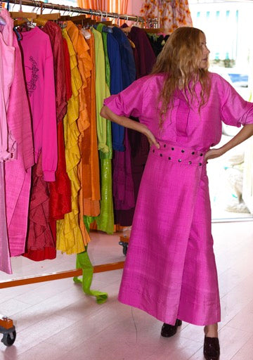 The fine weave of our silk dupioni fabric needs to be treated with extra extra love. If you treat it well, it will hold up for decades — your granddaughter is going to want to wear this in like 40 years.