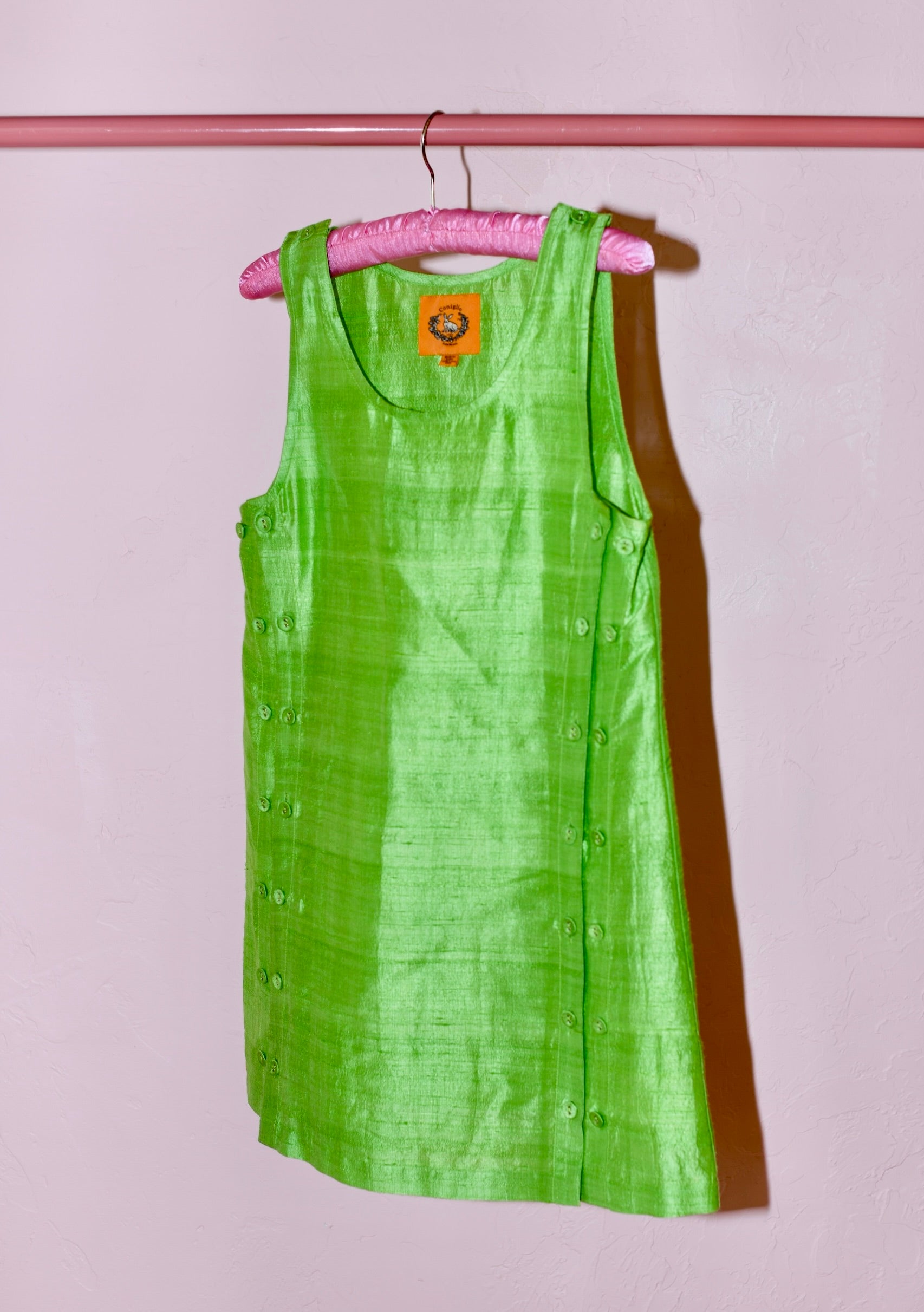 This new silhouette embodies everything we love about a classic shift and Free Size. Seven functional self covered buttons run along both sides of the dress, providing two different closures for our signature flex fit. Wear it as a dress or unbuttoned over vintage denim for a tunic style look. Two button closure at the shoulder so you can lower the neckline based on preference and fit attitude. This style is the epitome of ease, allowing the wearer to have a fitted shape but with functionality that creates a fit that shifts along with you.