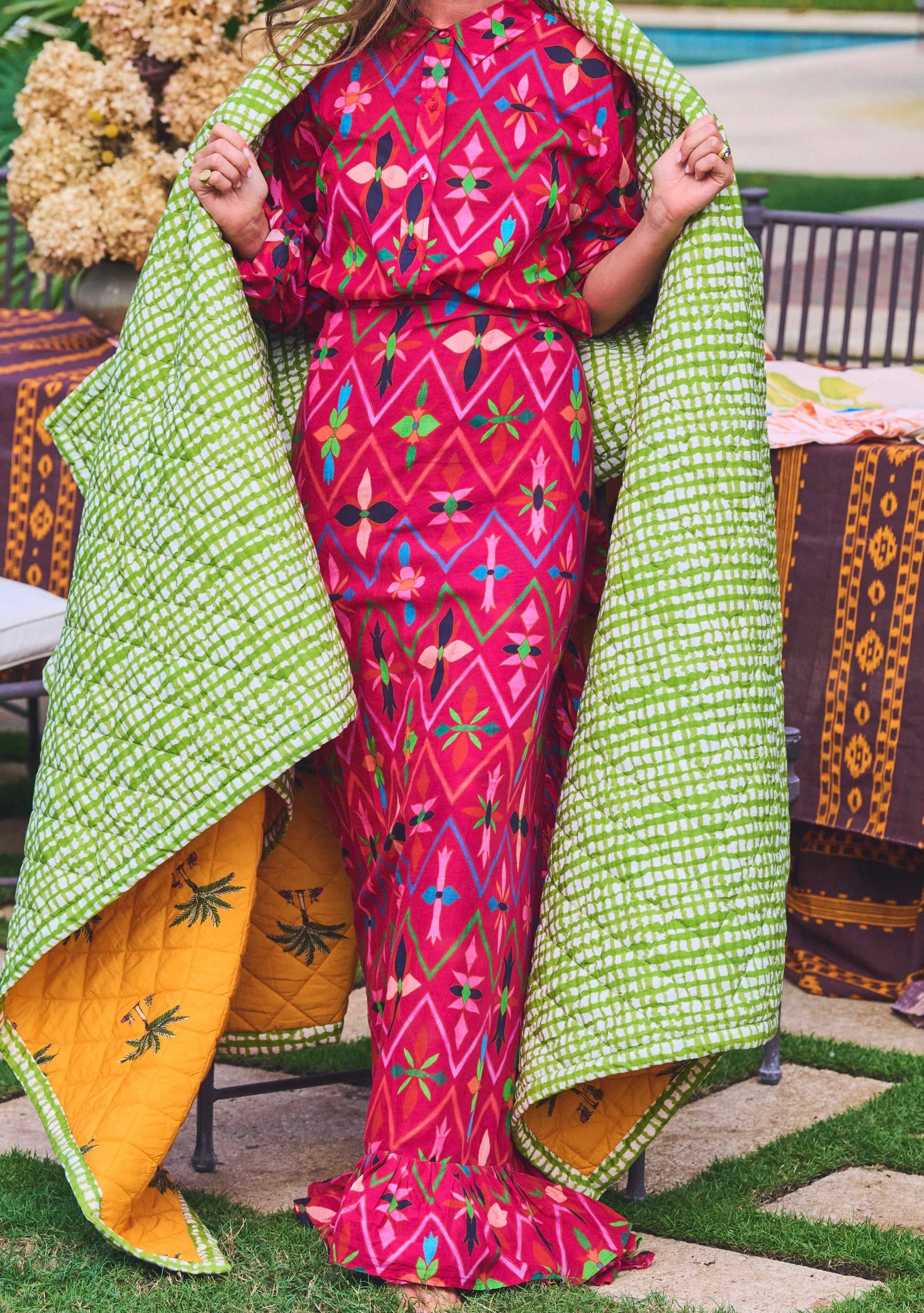 If you know, you know. We updated the classic Pareo with the shirred dramatic ruffle that makes it the most cha cha cha item you will own! Shop it in 100% silk or 100% cotton gauze for totally different end uses but totally amazing. You will be able to wear this as an easy beach skirt or dressed up for evening, depending!