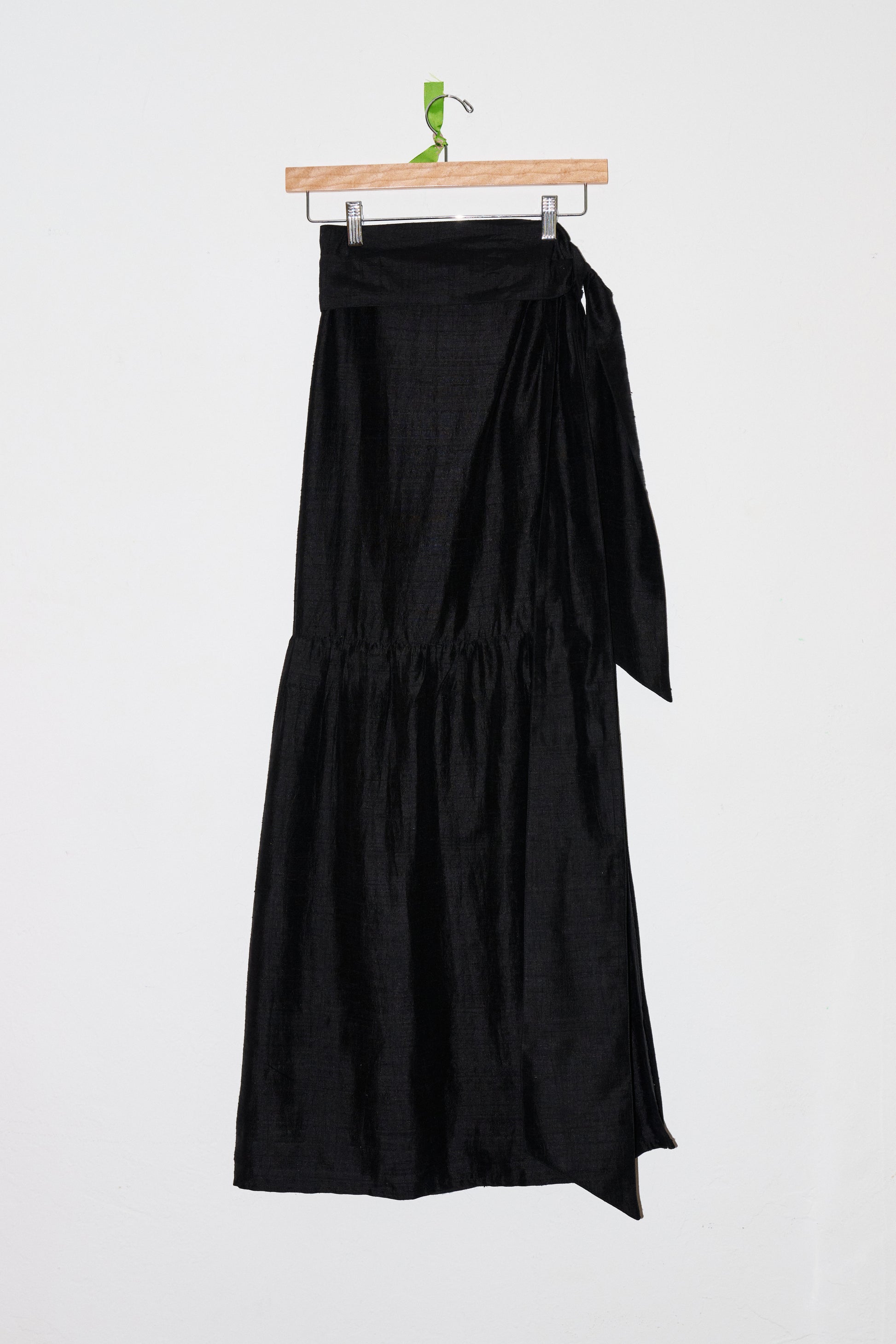 Think ruffle power pareo meets wrap around skirt in the BEST possible way. The shirring from mid-leg to the ankle provides a feminine touch, while the structured wrap at the waist creates a polished look. Pair it with a matching top in silk dupioni for the perfect party style or a cotton Baby Tee for a dressed down and chill vibe. No matter how you wear it, this skirt will be your new favorite piece!