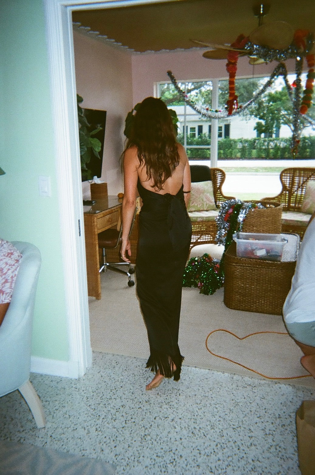 Center front waist slit, and center front slit at hem help support the special look and design of this wrap skirt style. Making it a very easy flex fit so you can share or adjust based on shifts and changes within your waist circumference. Intentional fraying detail throughout the garment creating a worn lived-in vintage effect. Center front length is a short mini (when tied) so if you don’t love a mini skirt, this is not for you! Waist ties extend so you can tie a large fun bow at the back or chic simple knot at the wearers left side body! Multi purpose styling and multi purpose wears. That’s what we are all about.